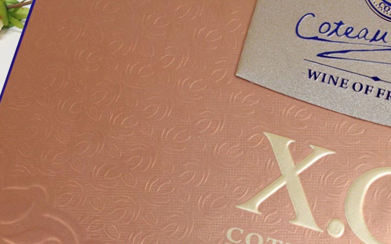 1.材質 :盒子外面採用紅色紋路塗布特種紙,彩色印刷文字LOGO燙金熱壓圖案紋路,裱2000G雙灰闆和内放有彈性的EVA,盒型爲翻蓋盒整款盒子都是手工制作
