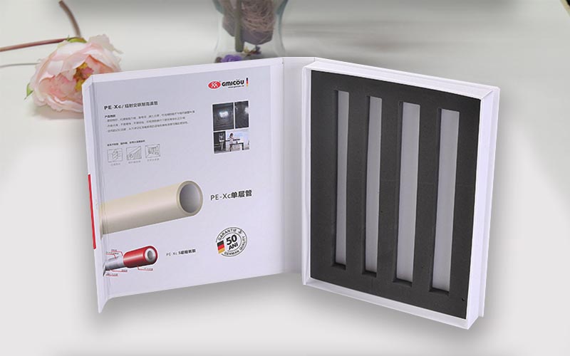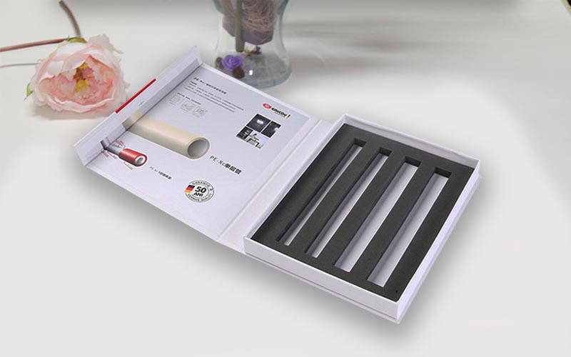 1.材質:盒子面紙用157G銅版紙單面彩色印刷覆亞膜.裱1500G雙灰闆内盒用銅版紙裱1500G雙灰闆内托黑色EVA 開模,和行爲翻蓋盒,整款盒子都是手工制作 。