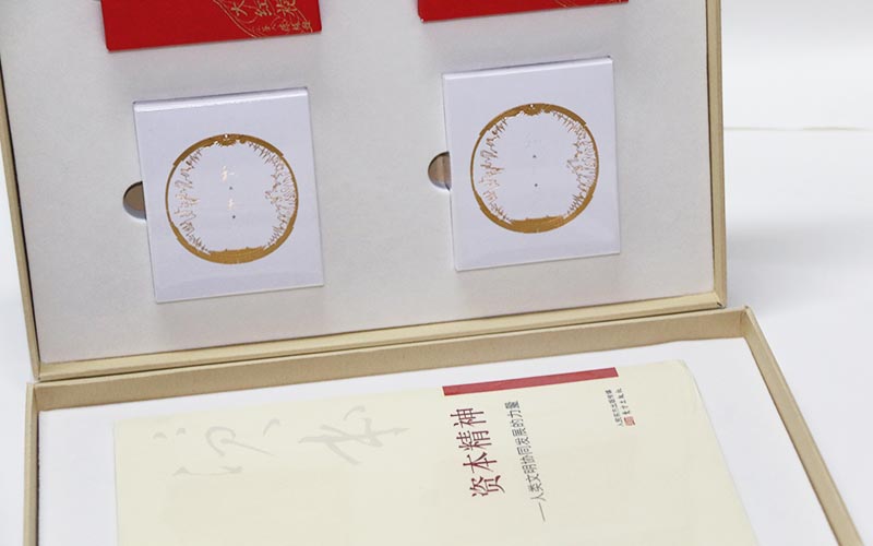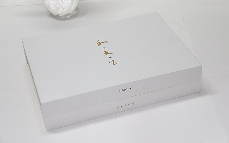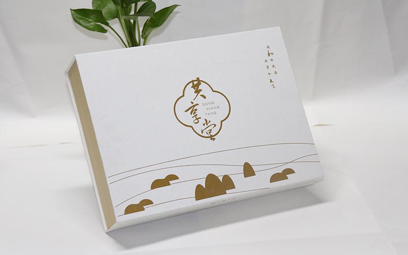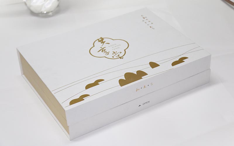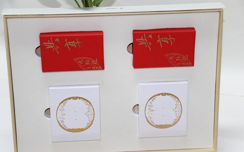 1.材質:盒子面紙用超白特種紙,盒子表面燙金文字,裱1500雙灰闆,盒子打開上下都可以放産品,盒子上下内托爲白色EVA更好固定産品,所有的産品都加上搜索膜,盒型爲翻蓋盒,整款盒子手工制作。