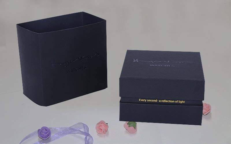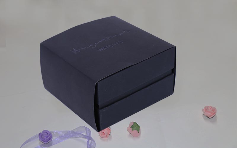 1.手表包裝盒定制-材質:盒子表面採用高仿皮質特種紙裱1800G雙面白雙灰闆,表面燙金或者是擊凸文字LOGO,盒内内托採用EVA和珍珠棉這是最常見的,需要更高端的内托可以用植絨或者是絨布都可以,盒型爲翻蓋盒和抽屜盒,手表比較高檔盒子制作精細