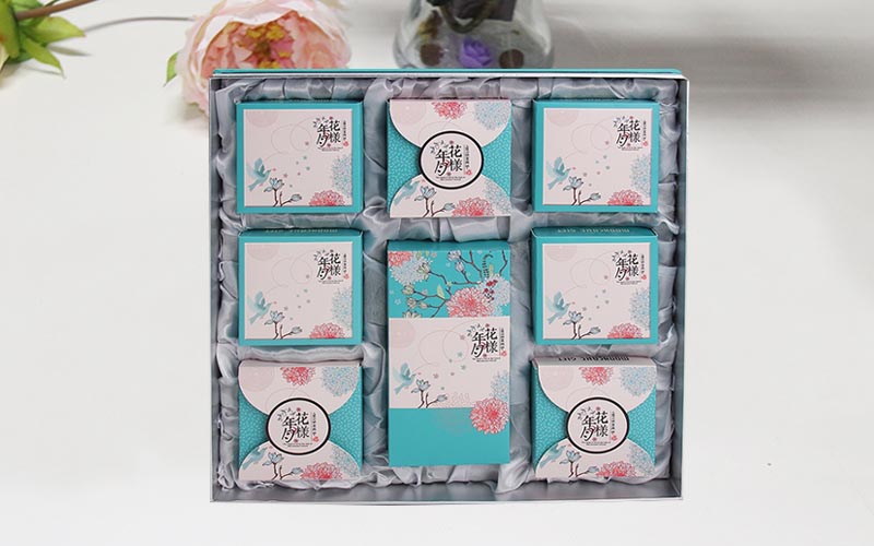 1. 材質:月餅(bǐng)包裝盒定制盒子面紙採(cǎi)用金銀卡紙或者是銅版紙,表面四色印刷過光膜裱1600G雙灰闆,内盒結構用350-400G單粉卡紙專色印刷手折盒成型即可,内托部分客戶喜歡用紙質内托,高檔的可以用綢布,整款包裝盒都是手工制作